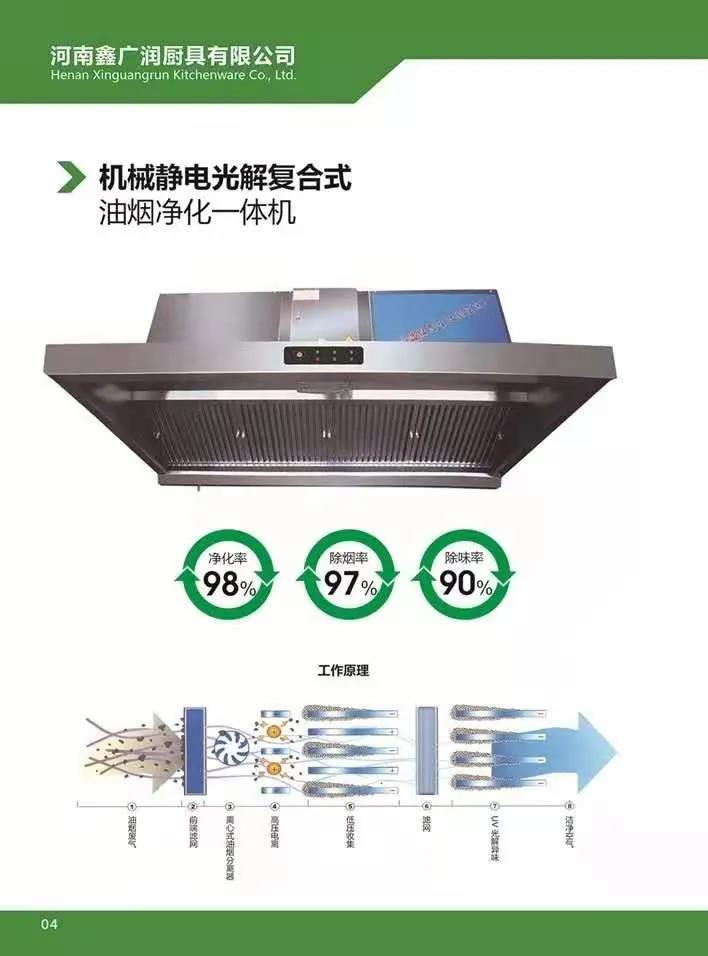 河南鑫广润商用厨具有限公司位于郑州市,公司主自主研发大型餐饮业油烟净化器、运水净化一体机、静电式油烟净化一体机、豪华玻璃烟罩,明档油烟渗化一体机、油烟净化器风柜、无烟烧烤炉、垃圾处理等油烟净化设备。