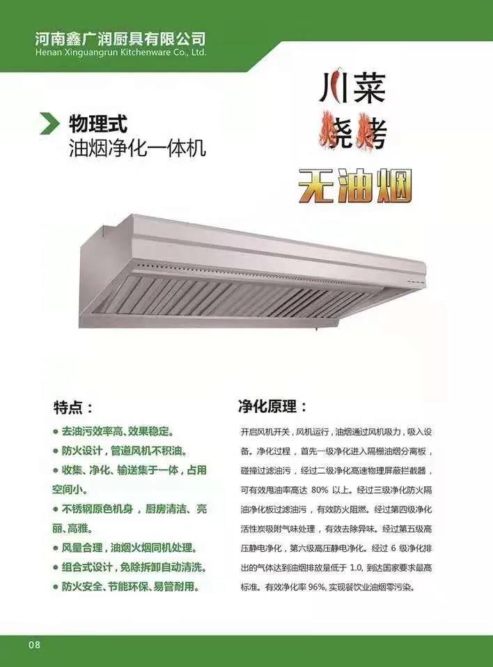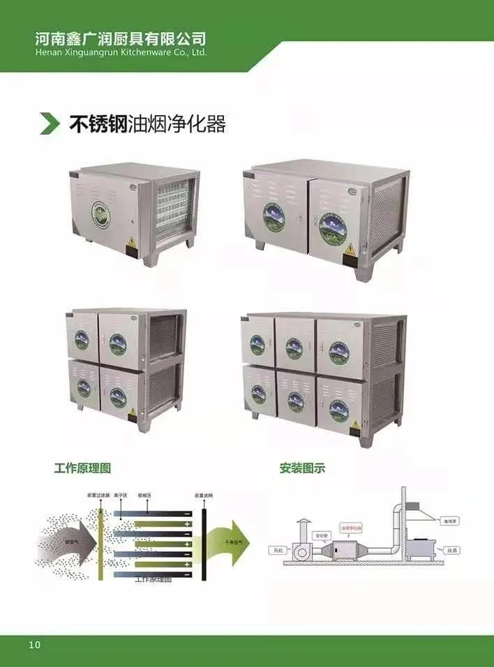 河南鑫广润商用厨具有限公司河南鑫广润商用厨具有限公司位于郑州市,公司主自主研发大型餐饮业油烟净化器、运水净化一体机、静电式油烟净化一体机、豪华玻璃烟罩,明档油烟渗化一体机、油烟净化器风柜、无烟烧烤炉、垃圾处理等油烟净化设备。
