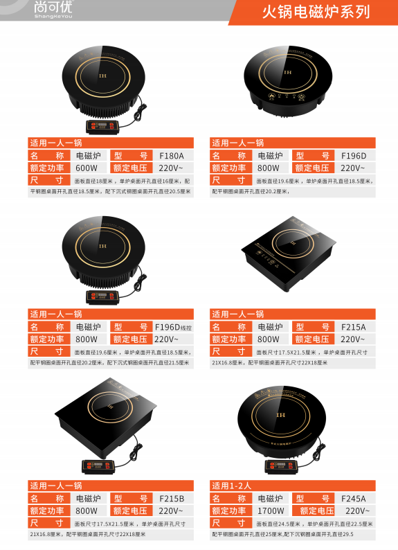 电磁热能设备以其操作简单,使用方便,加热速度快,热效率高以及高效的节能效果已逐步成为传统加热设备的终结者,具有无明火、无烟、无废气排放、安全性好、美观耐用等多方面优点。公司生产的系列电磁炉可进行煎、炸、煮等所有火锅中西餐烹饪,具有非常强劲的功率(火力)和可靠性,其人性化设计体现了人与灶具的完美结合 ,广泛配套于火锅店连锁店、企事业单位,学校,宾馆酒店及连锁餐饮业之厨房设施中,成为每一位顾客环保、节能及省钱的助手。